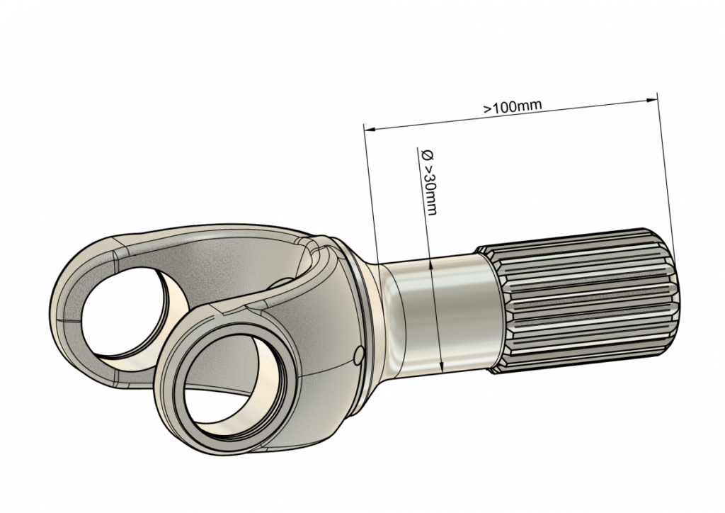 Die Sensorintegration wird durch einen coreIN Sensor realisiert, der in eine S4 Profilwelle eingepresst wird. Dadurch entsteht eine robuste Verbindung, die genaue Messungen ermöglicht, ohne die Konstruktion der Gelenkwelle zu verändern. Diese Welle kann vor der Integration auf eine beliebige Länge gekürzt werden.